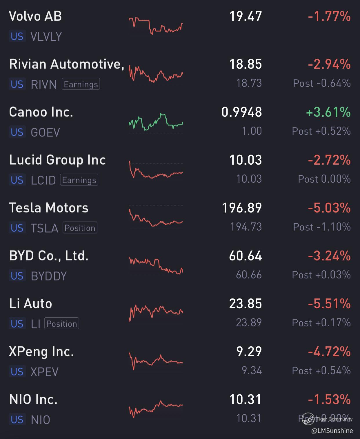 (4) On the EV front, all dropped except GOEV that rose 3.61%