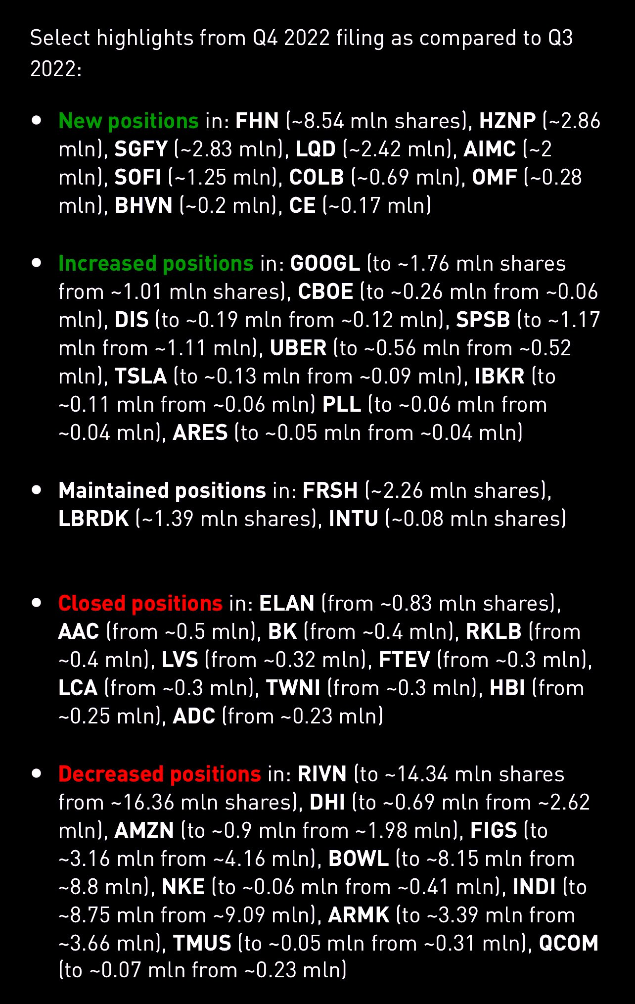 - Finance: new positions in $Goldman Sachs(GS)$, $Bank of America(BAC)$