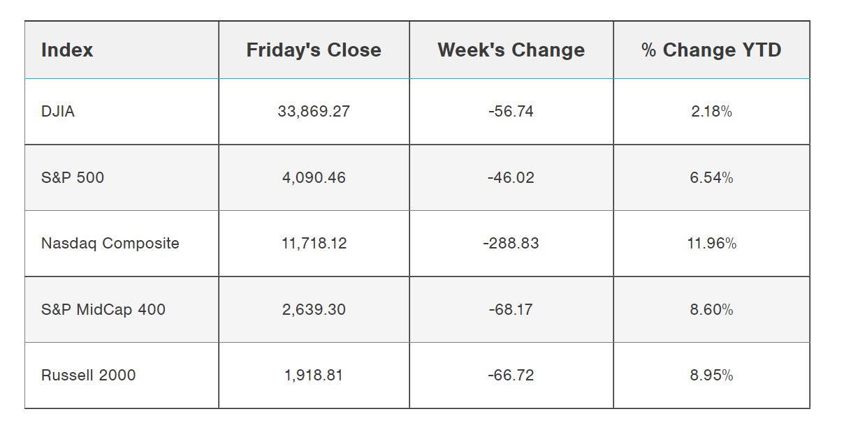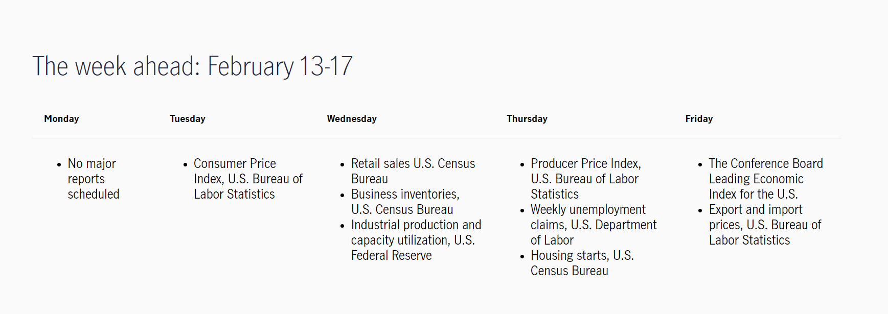 - The most significant stock-specific event for the broad benchmarks was a plunge in shares of Google parent Alphabet, which lost roughly USD 100 billion in market capitalization on Wednesday and fell roughly 10% for the week. The shares plunged after Reuters reported that Google’s new artificial intelligence (AI)-based chatbot, Bard, mistakenly identified the first satellite to take a picture of an exoplanet in its first public demonstration on Monday.