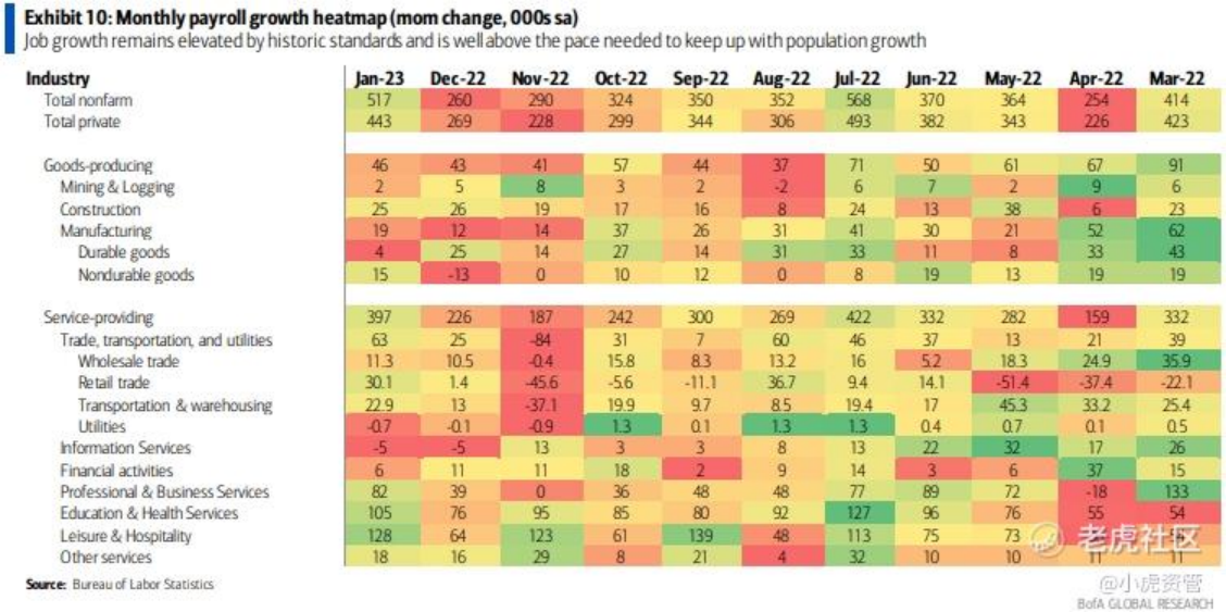 1. Strong demand in the service sector. 397,000 jobs were added in January in the service sector, well above the 2022 Q4 average of 218,000; the two major service sectors- travel and health care - are still not back to pre-pandemic levels. Their demand continues to rise and drive employment data up.
