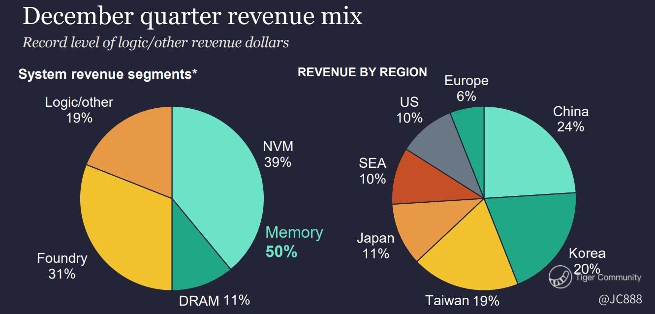 - Bulk of revenue was contributed by memory chip of which non-volatile memory chips constituted 39% of the 50%.