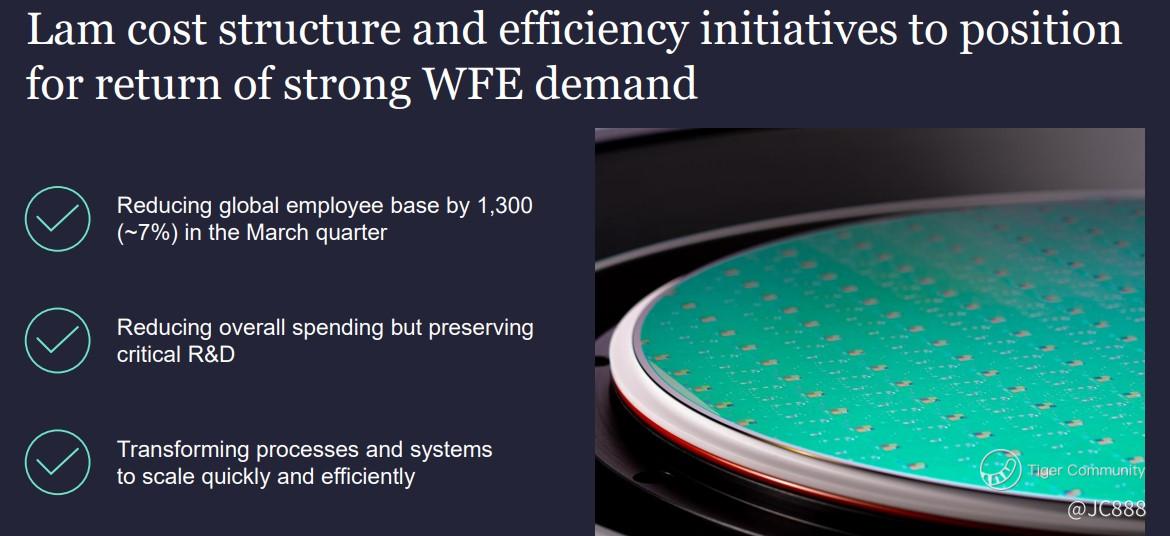 Given the decline in wafer fabrication equipment spending expected in calendar year 2023, we are taking proactive steps to lower our cost structure and drive efficiencies across our global footprint; while preserving critical R&D. With these actions, Lam is focused on accelerating our strategic priorities to capitalize on the semiconductor industry's long-term growth prospects... Lam Research, CEO, Timothy Archer....