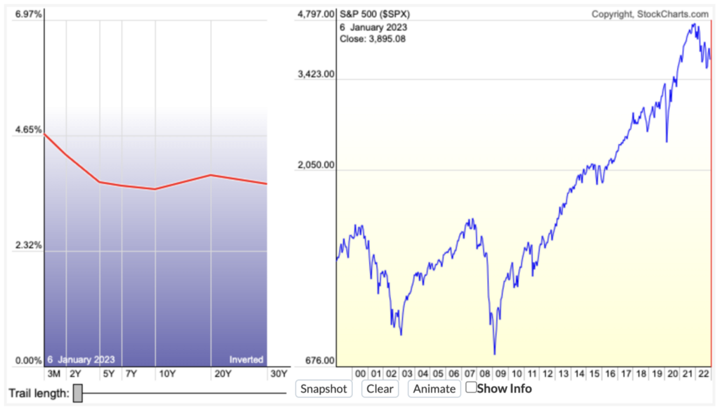 Ever since reading The Theory of Money and Credit by Ludwig von Mises, I have believed interest rates are the main driver of the economy and the markets. Big cycles, and hence regime changes, result from monetary policy. At the beginning of 2023, the U.S. yield curve is inverted. In all cases, an inverse yield curve is followed by a recession.