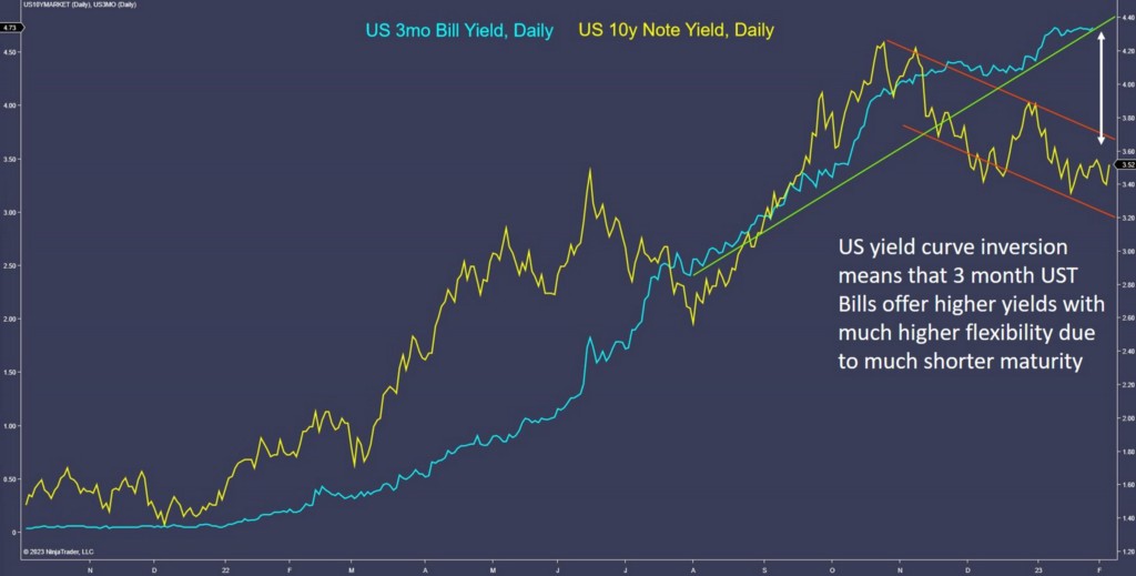 • US 1 month Bills are currently trading with a yield of 4.56%, and 3 month Bills at 4.67%. US 10y Notes are trading with a yield of 3.55%