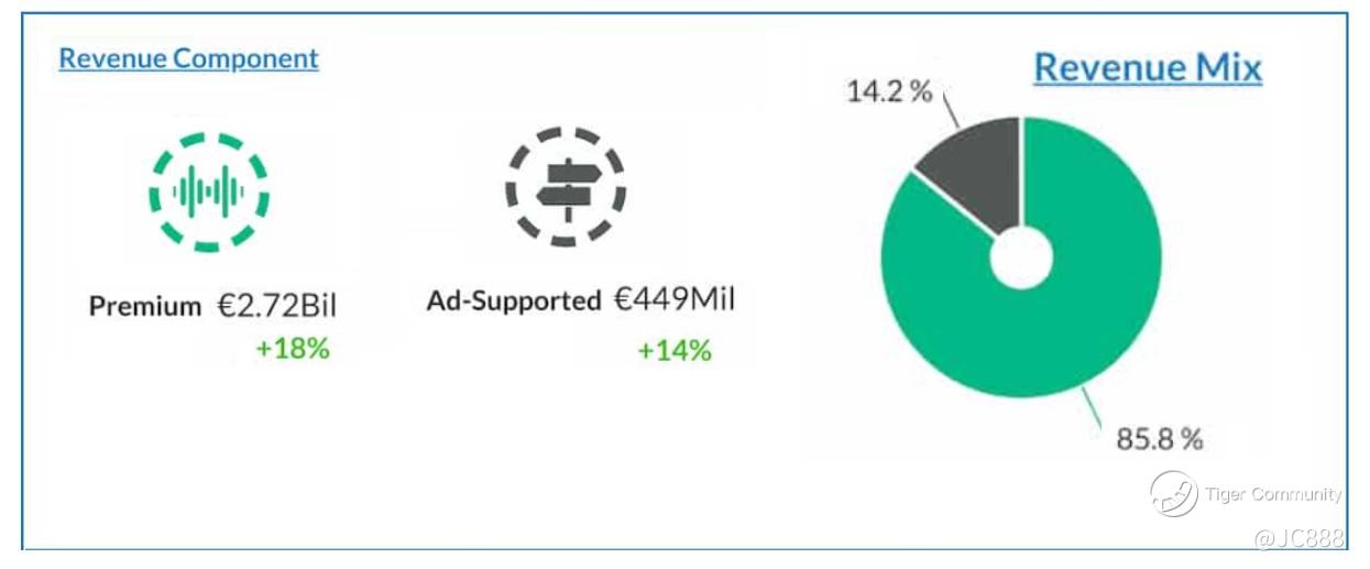 - As could be seen, Spotify's main revenue source is from its Premium Service offering; contributing the lion's share of revenue at 85.8%