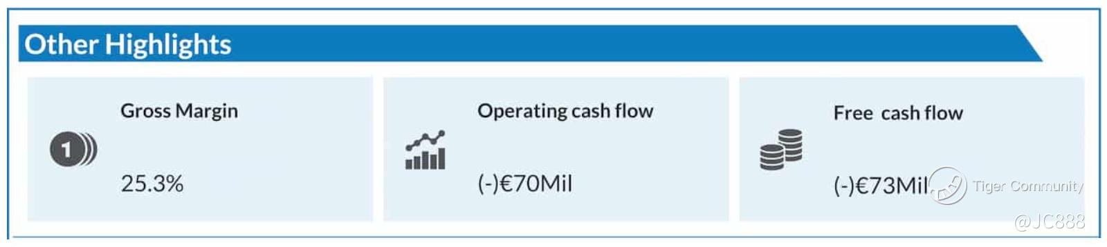 - Free Cash Flow (FCF) was -EUR$73 million, a decrease Y/Y as a result of lower Net Income adjusted for non-cash items and reduced favorability in net working capital.