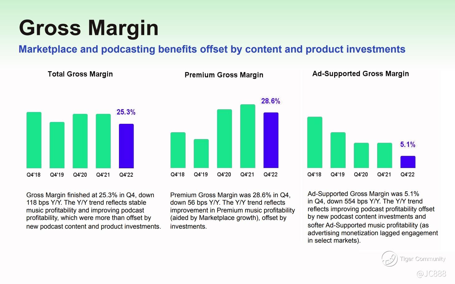 - Spotify's Gross Margin came in at 25.4% vs 27% (Q4 2021); thats a -1.6% decline