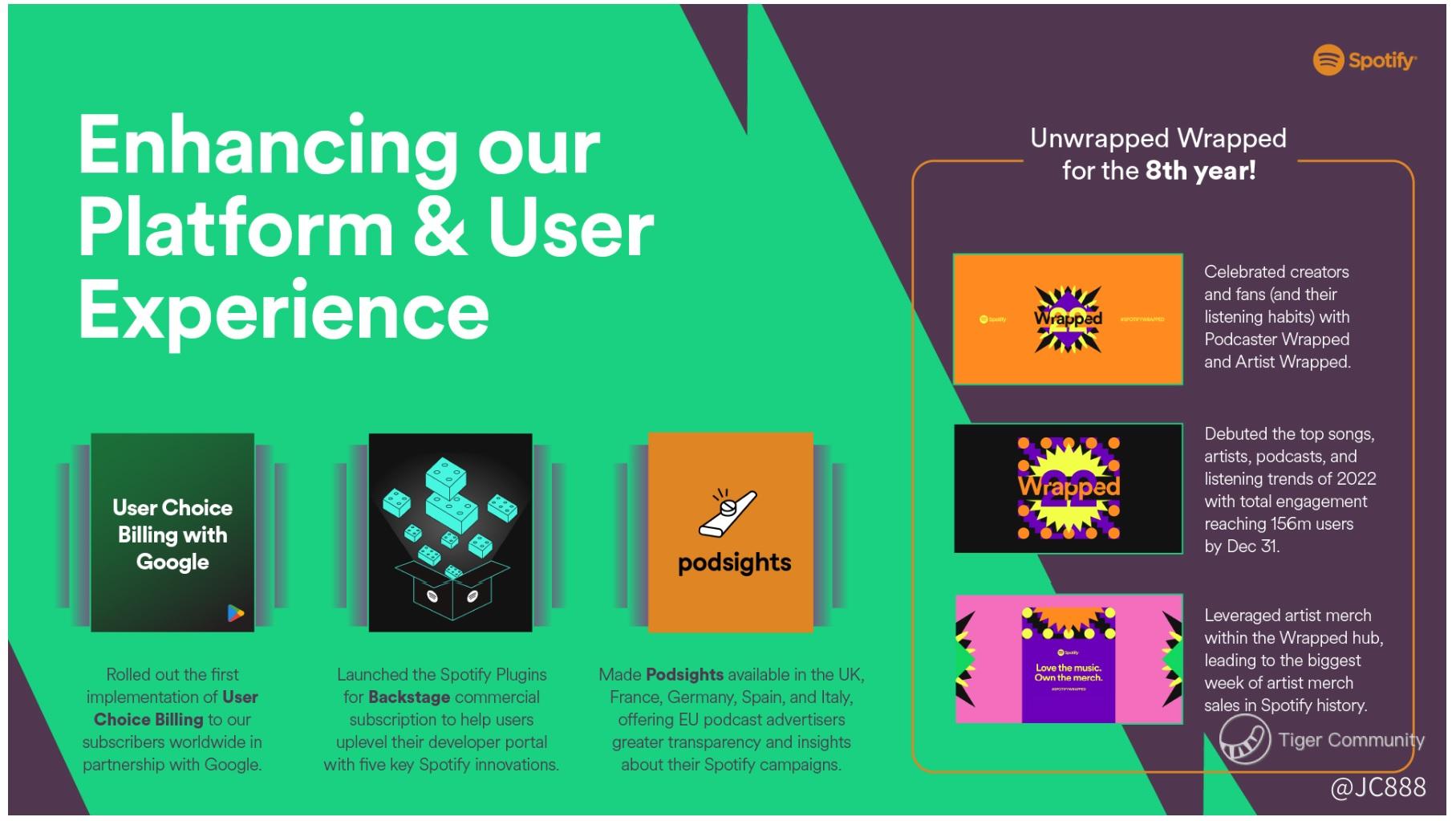 Looking back on 2022 in its entirety, we are pleased with our overall results. Each year presents certain challenges and opportunities and, over the past 12 months, we largely delivered on our internal goals and we are excited about the momentum we are building heading into 2023... Spotify, CEO, Daniel Ek
