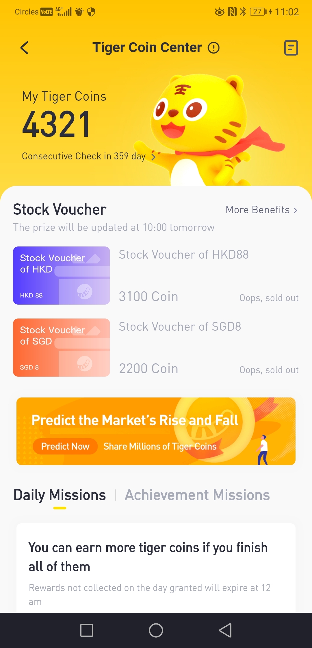 I had joined Tiger broker apps for almost 1 years, but I didnt know how to earn tiger coins at that time (the 1st 6month), I only use the daily sign in coins to predict the market rise or fall. After using tigers app for a period and meet a lot of friends (@koolgal @HelenJanet @LMSunshine @Universe宇宙 @melson @SR050321 @WanEH @GoodLife99 @rL @SirBahamut @Fenger1188 @SPOT_ON @Aqa and more) , I managed to get some tips on how to earn tiger coins.