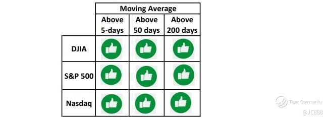 Despite the slight dipped, the Dow Jones indexed is still healthy above its 200-day, 50-day and 5-day Moving Averages. As are both S&P 500 and Nasdaq.