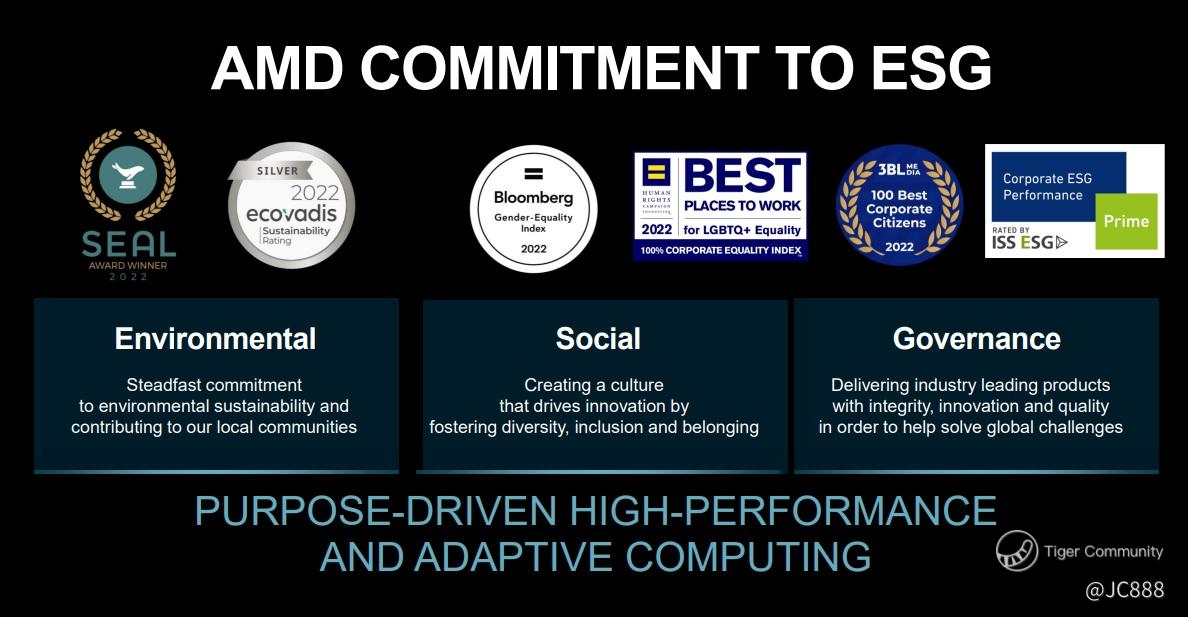 - Similarly, AMD will continue to commit to ESG implementation & governance while pushing forward its purpose driven, high performance & adaptive computing persues. Refer to below diagram for details.