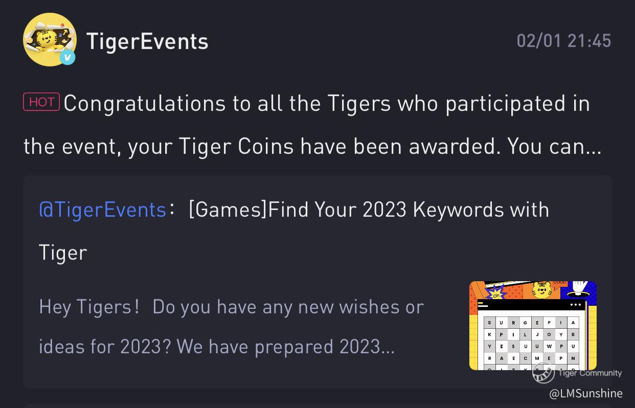 (3) Join 🐯Events, lots of 🐯🪙 every week Via A Wide Range of Activities to cater to different 🐯’s talents ➡️ Spot the Difference, Share your Holdings, Word Puzzle, Drawing & etc…As you can tell from the earlier photo, I just received my 200coins for finding 20 words in a recent CNY Word Puzzle Event❣️