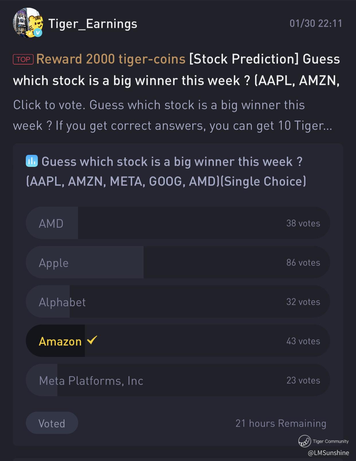 ⭐️⭐️ Predict if a popular stock will rise (bullish) or drop for the week (bearish) & include your view in the post & you may get 100/60/40coins for the 1st/2nd/3rd 🐯 with the highest prediction accuracy for each stock.