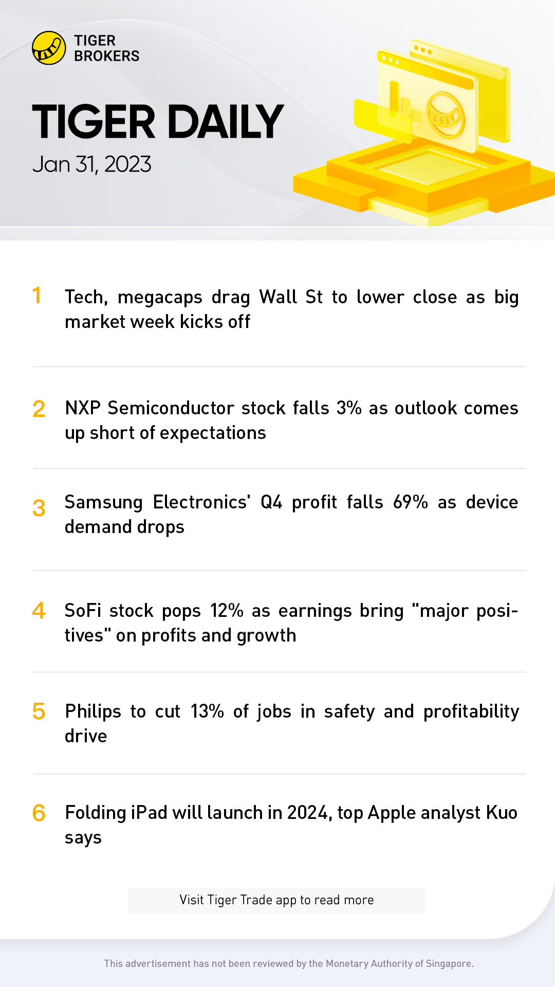 - NXP Semiconductorsโ Shares of NXP Semiconductors dropped 3% in extended trading after its revenue outlook for the first quarter fell short of analystsโ expectations, according to FactSet. The company upped its dividend and posted a slight fourth-quarter revenue beat.