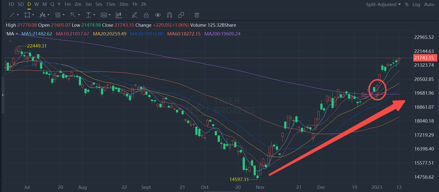 Hi Tigers, As of the close on January 13, the $HSI(HSI)$ hit a six-month high, and has maintained a sharp rise for since November 1st, 2022 as global funds buy and tech risk ebbs.