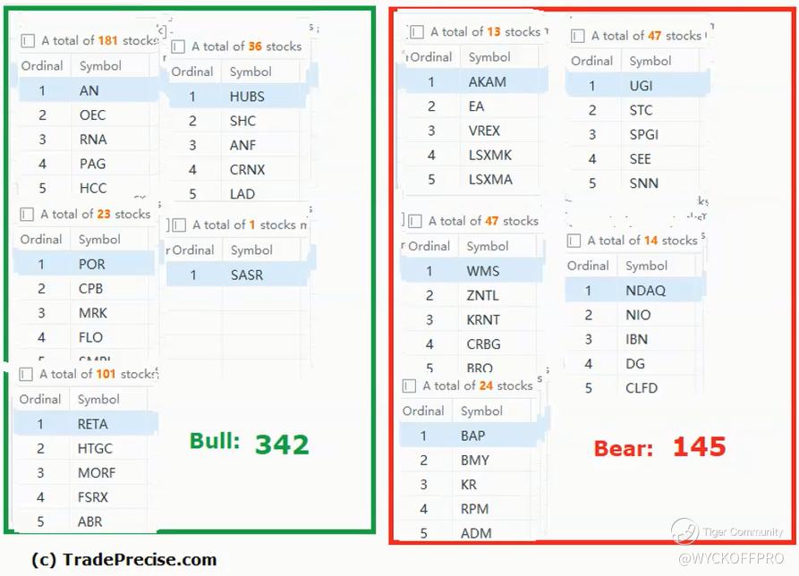The bullish setup vs. the bearish setup is 342 to 145 from the screenshot of my stock screener below suggested still a positive market environment.