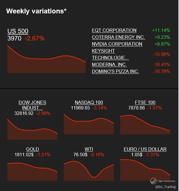 $S&P 500(.SPX)$ fell 1.1% and 2.7% weekly. The index has fallen on five of the last six trading days and for three consecutive weeks.