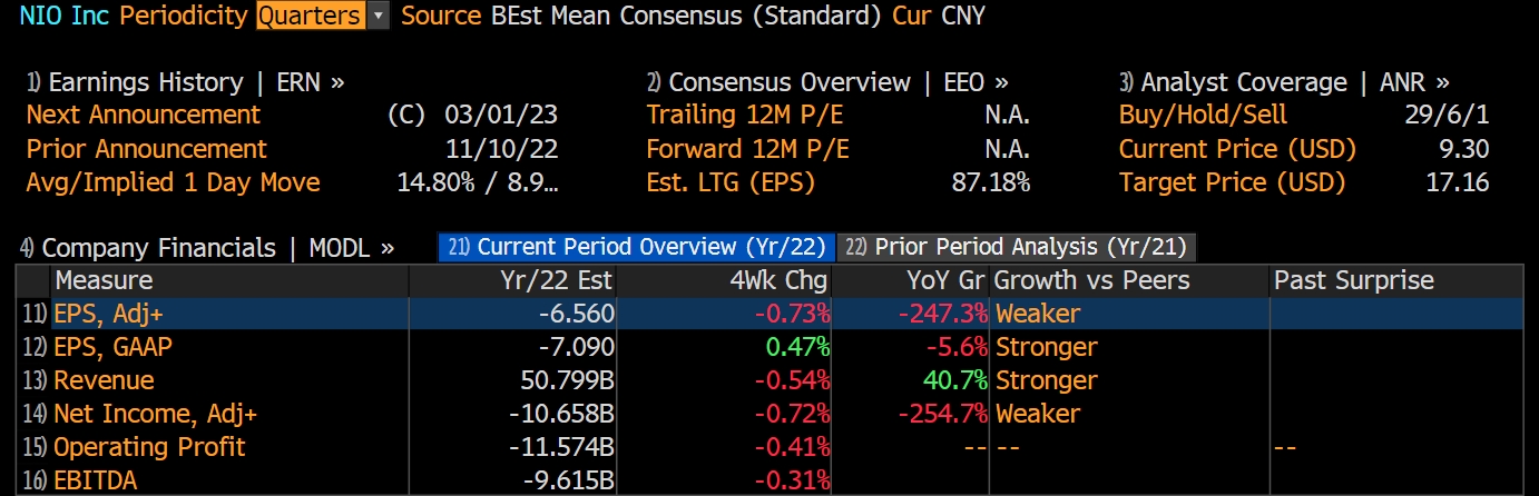 Previously released data showed the company delivered 40,052 vehicles in the fourth quarter, below its initial guidance range of 43,000 to 48,000, but above the lowered guidance of 38,500 to 39,500 vehicles.Deutsche Bank analyst Edison Yu's team said the fourth quarter will be a weak one for NIO, with margin downside risk and a weak outlook for first-quarter sales. But as the year progresses, a significant improvement can be expected in the second half, if new models ramp up as planned and scale up accordingly.NIO Q4 earnings consensus