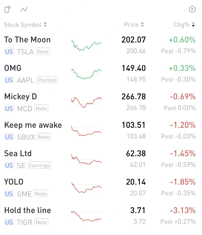 Today, I would like to invite you to rename your favorite stocks. Give them a nickname, such as a product name, or a good wish. For example:💡How to participate