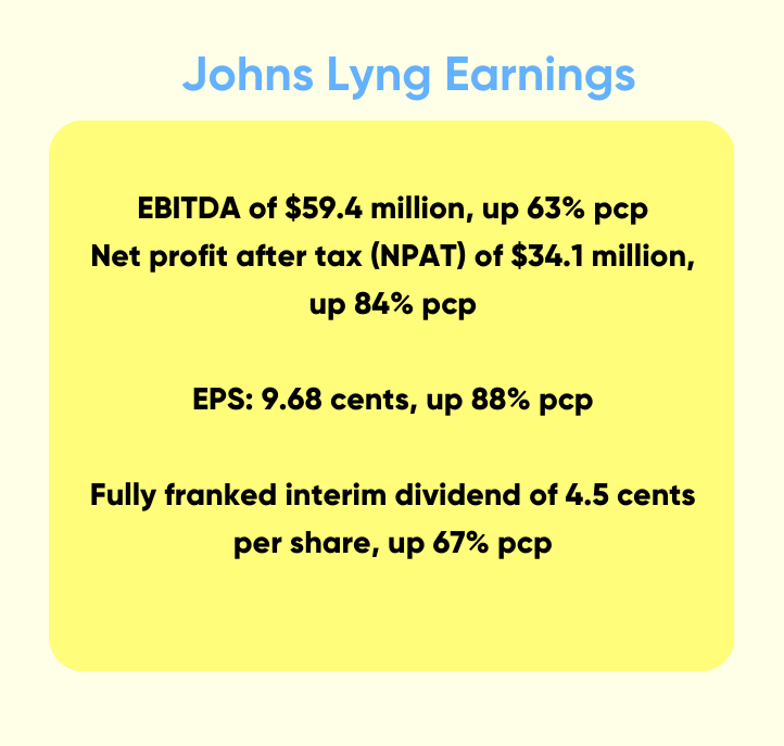 Johns Lyngsurged 16% after it reported a 63% increase in first-half EBITDA and has upgraded its revenue and EBITDA forecasts for the full year.