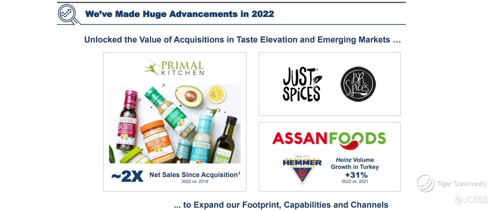 It has grown to it current mega cap size via strategic acquisitions of Cerebos Pacific (2017), Primal Kitchen (2019), Hemmer (2021), Assan Foods (2021), Just Spices GmbH (2022),