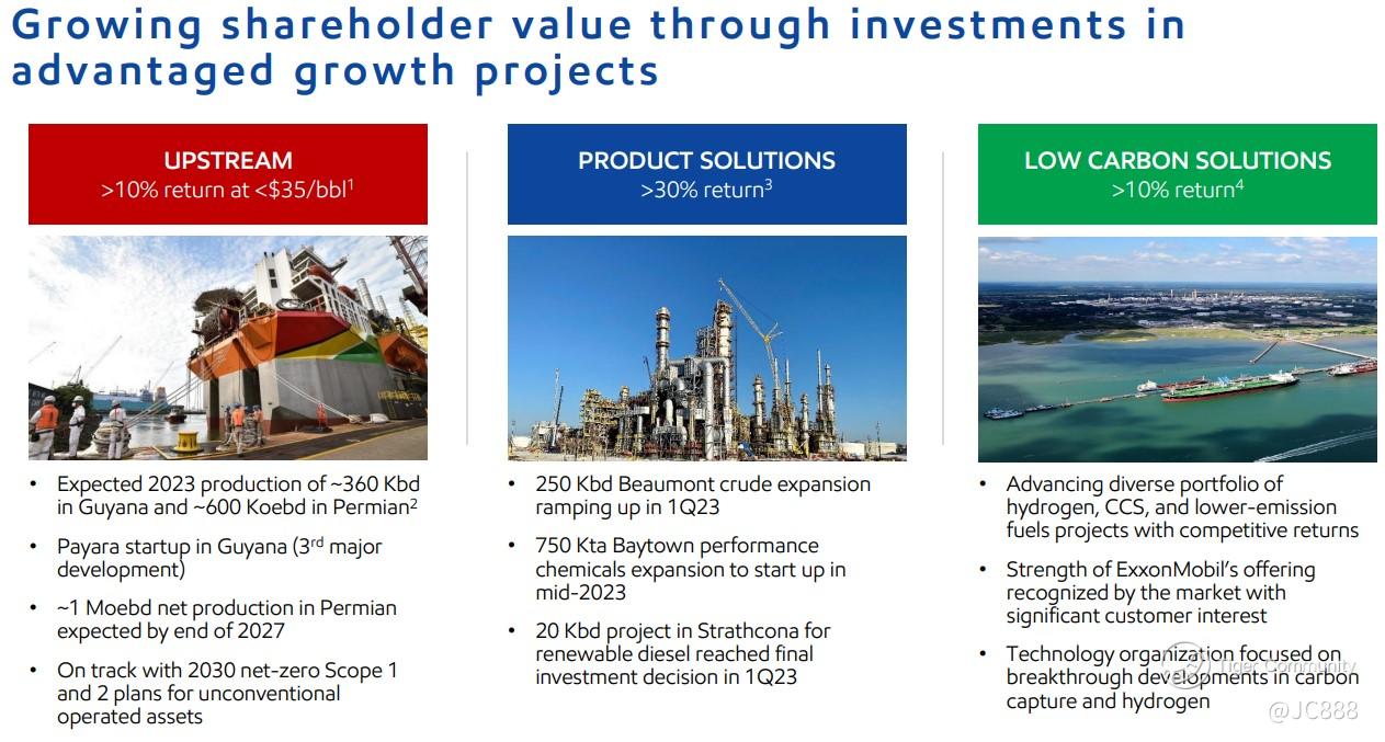 Our plan for 2023 calls for further progress on our strategic objectives, which include leading the industry in safety, operating, and financial performance. We will continue to invest in our advantaged projects to deliver profitable growth, help meet society's growing needs and reduce emissions in our operations.. ExxonMobil, CEO, Darren Woods....