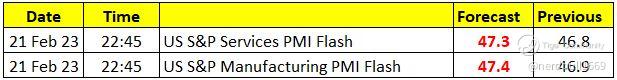 We have quite several events happening on 21 Feb 2023, I would like to look at the US S&P Services PMI Flash and US S&P Manufacturing PMI Flash.