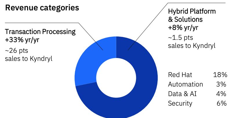 IBM reported free cash flow of $4.1 billion, up $900 million year-over-year. The company continues to implement a strong acquisition growth strategy and has invested more than $1 billion in acquisitions over the past three quarters, including acquisitions of consulting firms such as Octo and Dialexa.