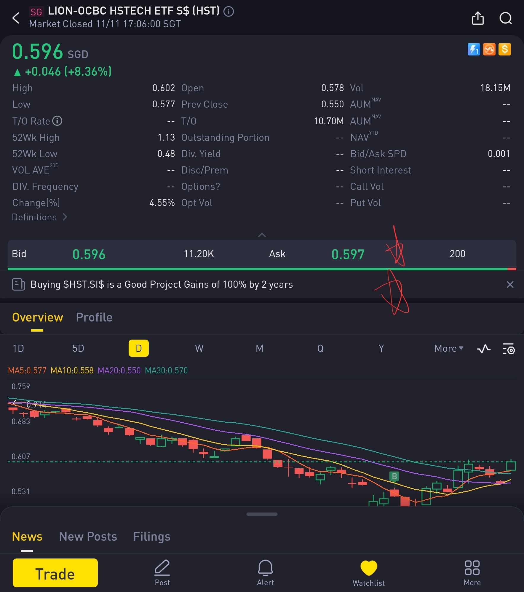 Buy $LION-OCBC HSTECH ETF S$(HST.SI)$