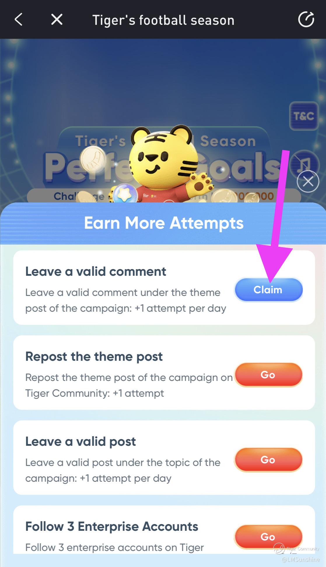 I just tried the 🐯Football Season Event & here’s the step-by-step guide on what I did. Hope this helps those who're new to the 🐯 app😉