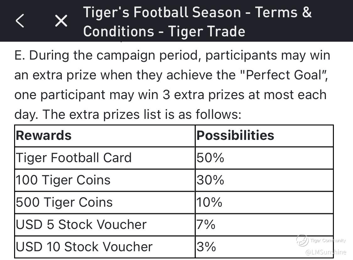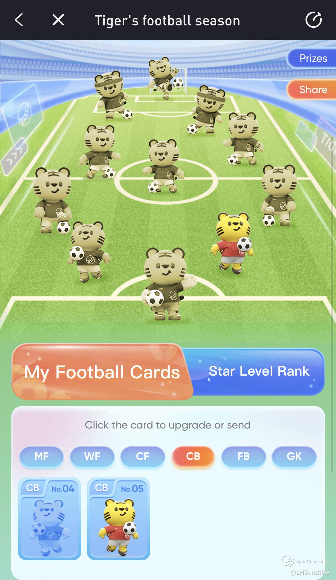 ⭐️ You may win 3000 game points by collecting Tiger Football Cards covering all 6 positions.