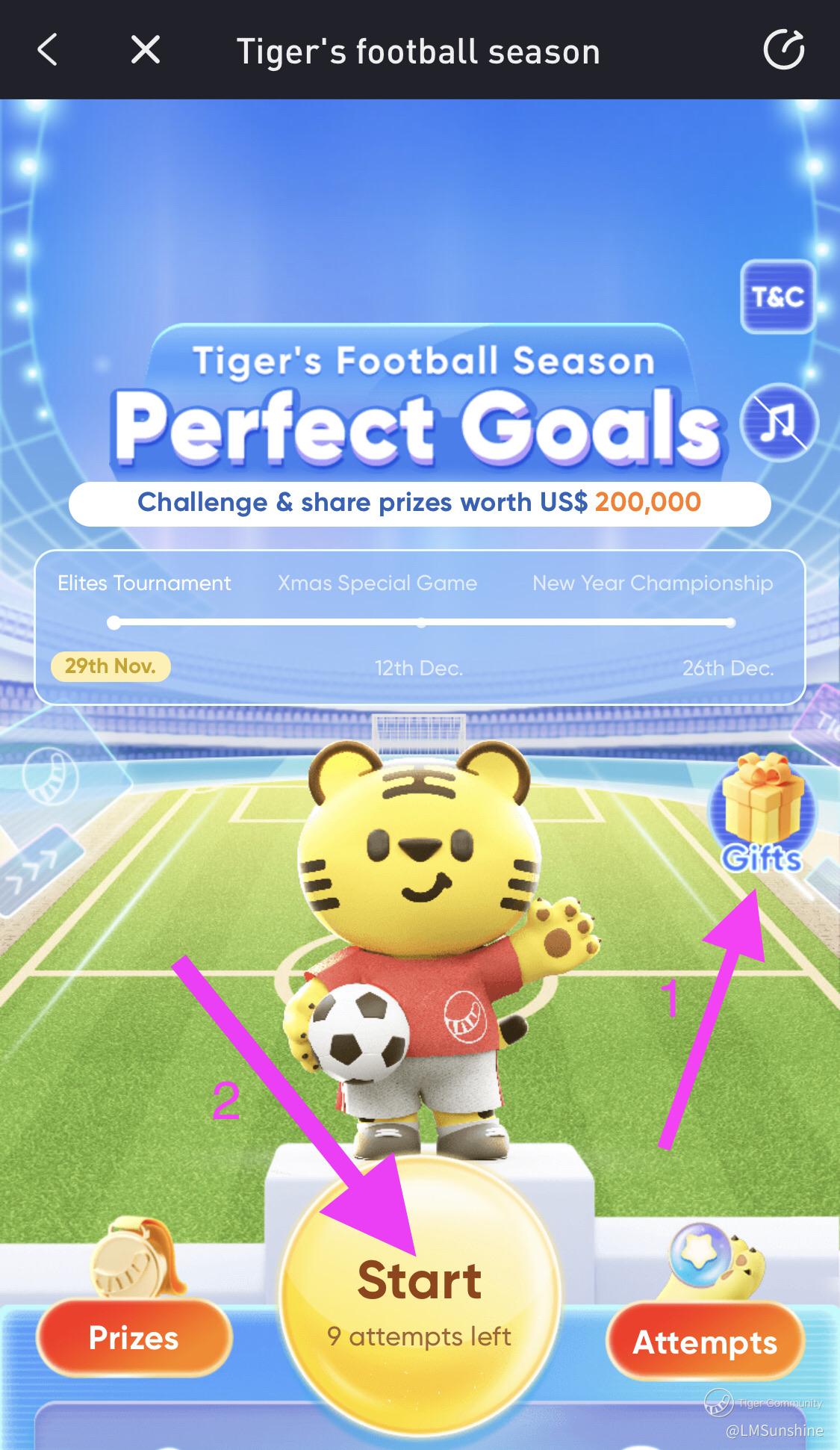 Please help me by a simple click. Join Tiger's Football Season, claim daily gifts for free, play the game to win more, and share prizes worth up to US$200,000 with us.