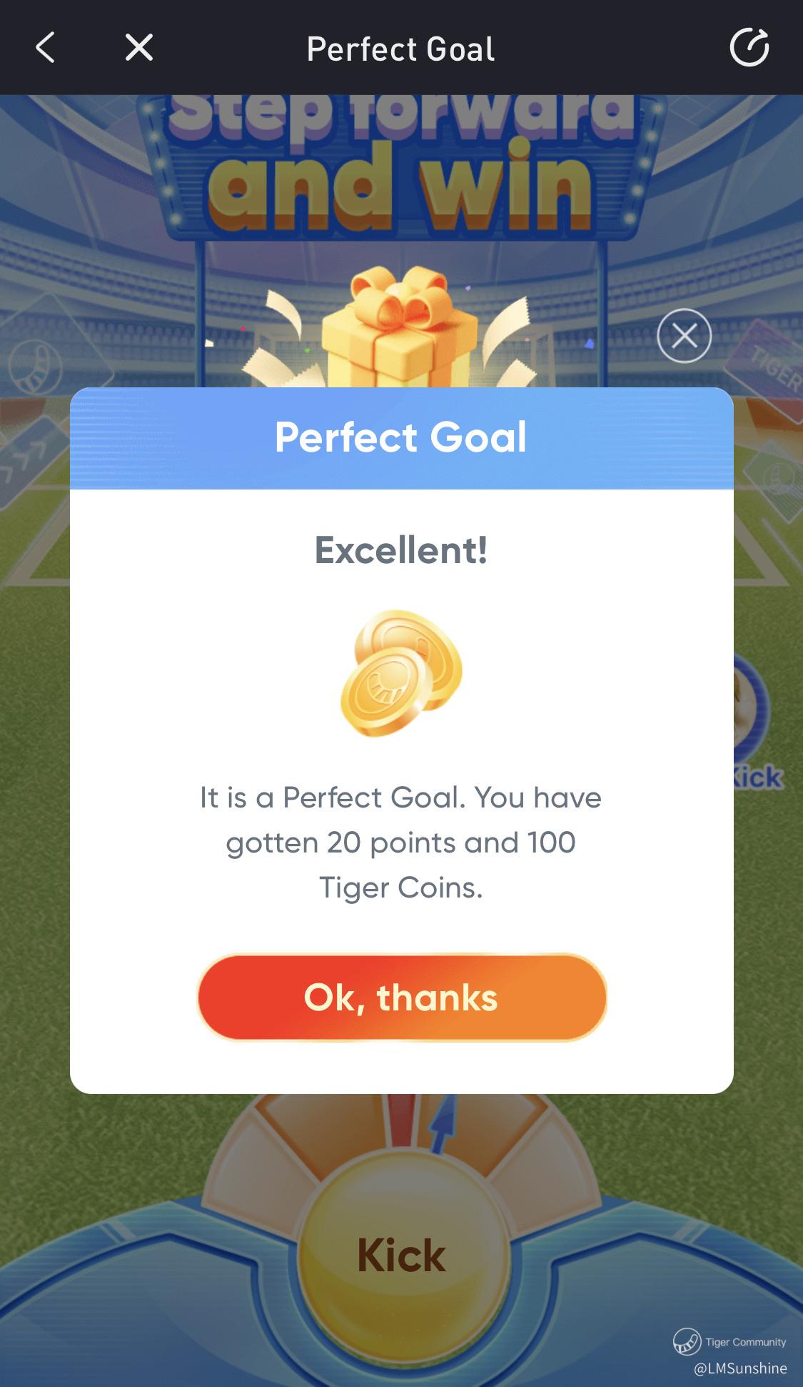 ➡️ You will get 10 points for each “Normal Kick" & 20 points + an extra prize for each "Perfect Goal"