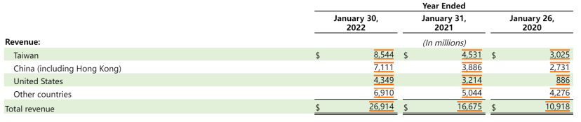 According to NVIDIA's geographical revenue in fiscal year 2022, the revenue from China accounts for 26.4%: