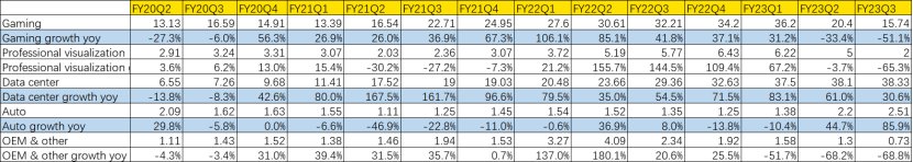4) Professional visualization's revenue was only USD 200 million, down 65.3% year-on-year.