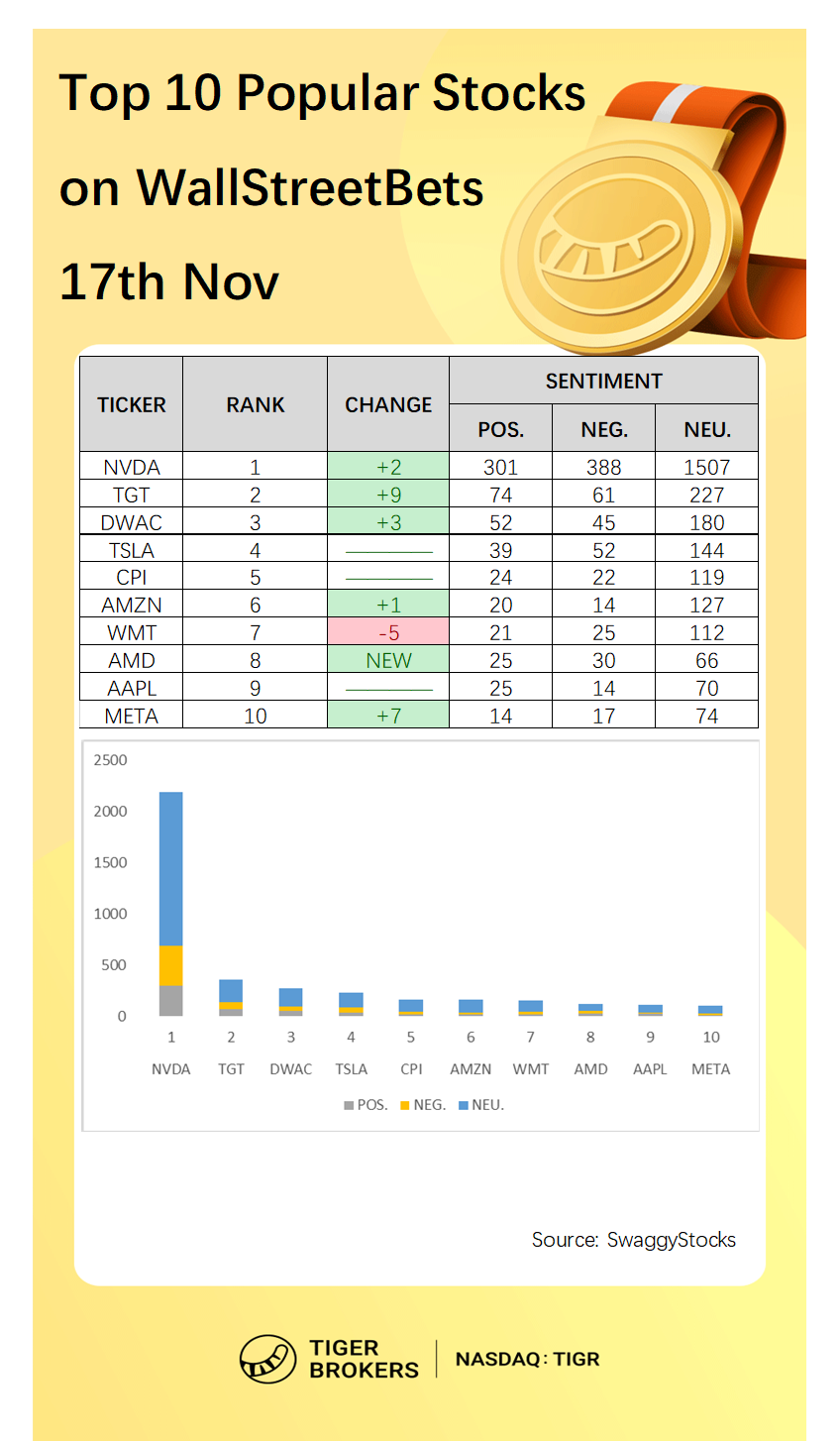 $NVIDIA Corp(NVDA)$ $Target(TGT)$ $Digital World Acquisition Corp(DWAC)$ $Tesla Motors(TSLA)$ $CPI(CPI)$ $Amazon.com(AMZN)$ $Wal-Mart(WMT)$ $AMD(AMD)$ $Apple(AAPL)$ $Meta Platforms, Inc.(META)$