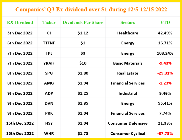 11 high dividend Stocks for 5th -15th December 2022: