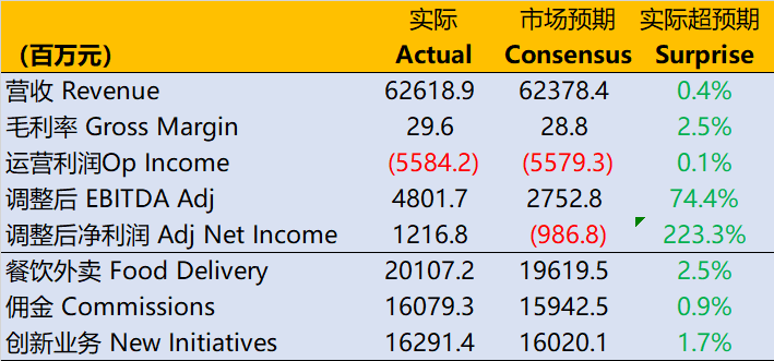 - The adjusted EBITDA was 4.8 billion yuan, which was higher than the market expectation of 2.75 billion yuan.