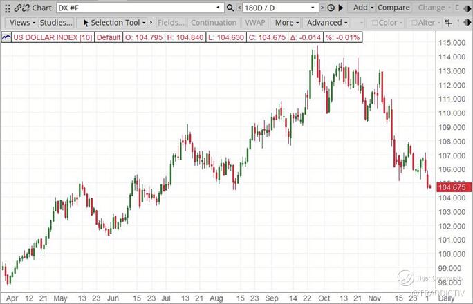 The U.S. Dollar Index ® (USDX) lost almost 5.00% of its value in November to close at 105.90, the largest monthly loss since 2010.