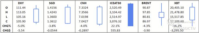 - The Federal Reserve raised rates by 75 basis points at the meeting held on 2nd November bringing the Federal Funds rate to a target range of 3.75% - 4.00%, its highest level since March 2008. The USDX closed the day at 111.23 with a loss of 0.12%.