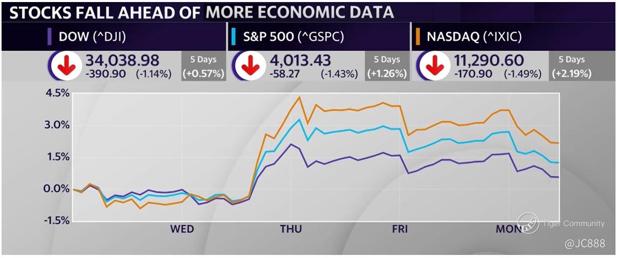 - DJIA : -1.48% (-482.78 to 33,947.10).