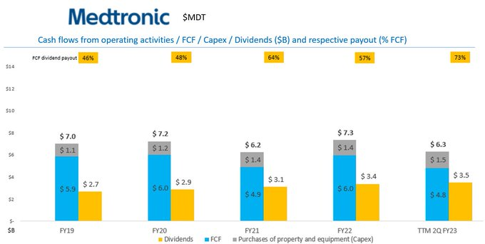 1.$Medtronic PLC(MDT)$ MDT cash flow picture after 2Q FY23
