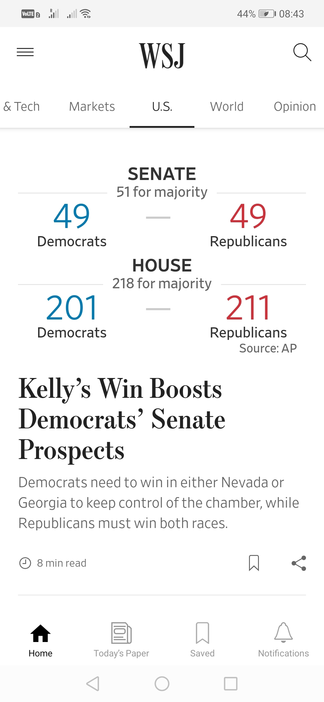At the moment, it looks like the Republicans have won 211 seats versus 201 seats for the Democrats in the House of Representatives. However it is neck to neck with 49 seats win by the Republicans and another 49 seats in favour of the Democrats in the Senate. So the general consensus by the political analysts is that the Republicans will gain control of the House while it is a tie breaker for the Senate.