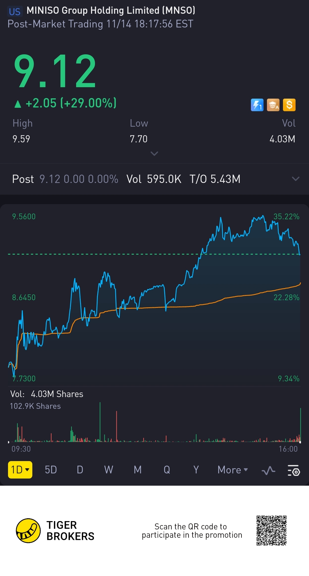 $MINISO Group Holding Limited(MNSO)$ uup up all thevway