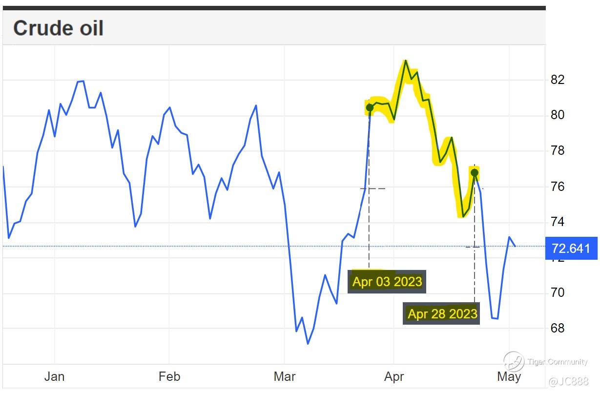 Since oil prices do not fluctuate too much from chart to chart, I have selected Crude Oil chart as my reference - for simplicity to quantify April 2023 prices.
