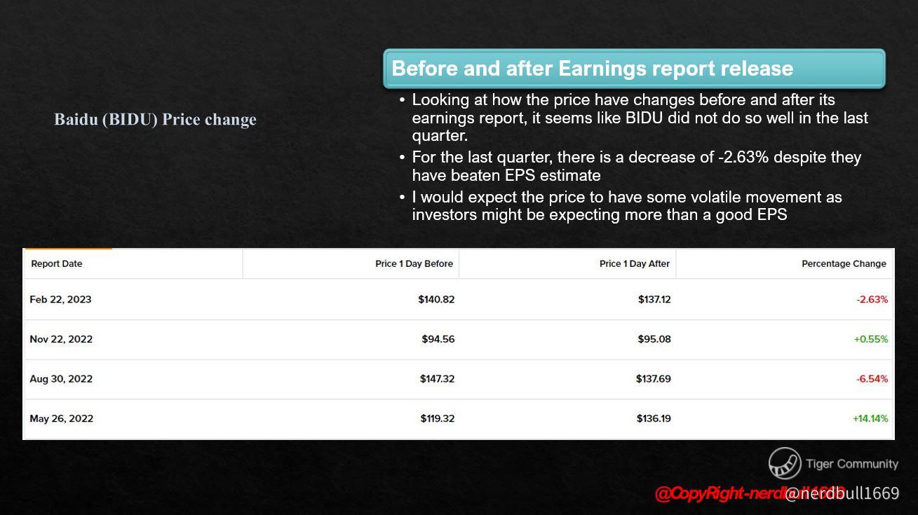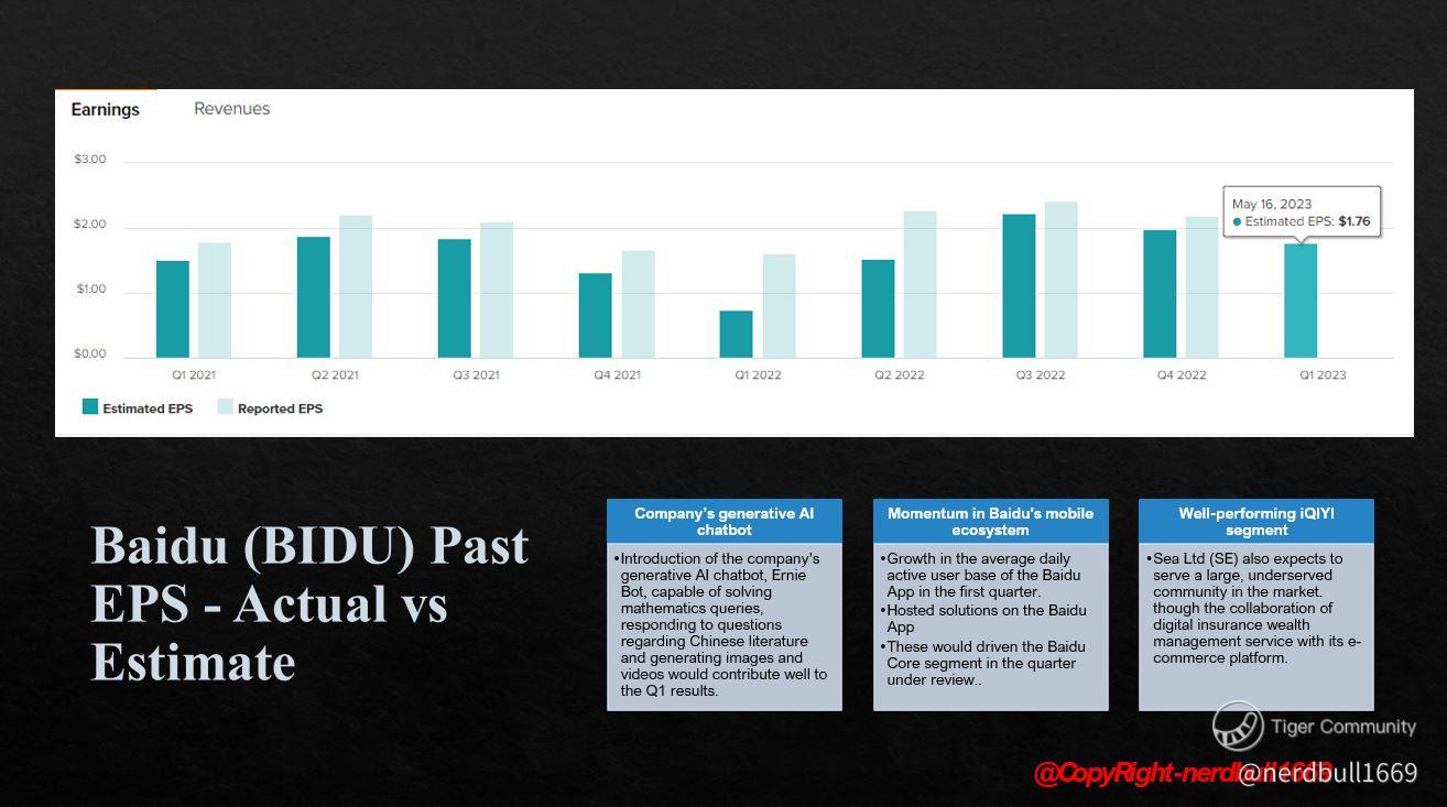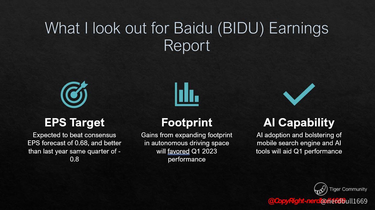 $Baidu(BIDU)$ will be releasing their earnings report on 16 May 23 pre-market.