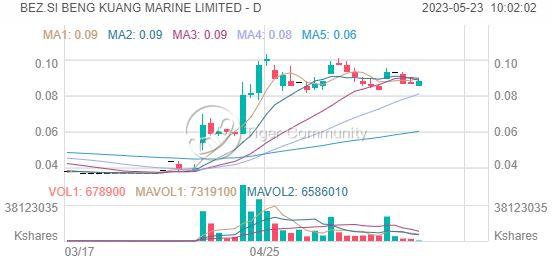 On 12 April, Beng Kuang Marine announced that the Group had entered into a conditional land sale and purchase agreement to sell a part of its Batam waterfront shipyard property for S$8.64 million to a subsidiary. Prior the announcement, Beng Kuang Marine was trading at S$0.04. On 16 May, Beng Kuang Marine reported 1QFY23 (ended 31 March) gross profit increased 26.4% from 1QFY22 to S$3.18 million, with improvement in cost management and productivity initiatives, and in total the Group had an order book of S$24 million as at 31 March.