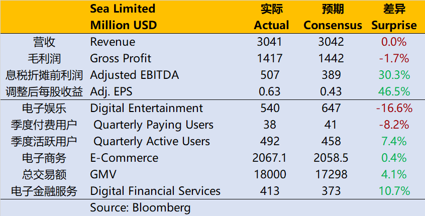 Garena's GAAP revenue was $540 million USD, a YoY decrease of 43%, which was lower than expected ($647 million USD). This is due to FreeFire entering a decline phase and withdrawing from operating League of Legends in Taiwan. Adjusted EBITDA was $230 million USD, slightly higher than market expectations ($222 million USD), as overall game operations are more mature and profit margins are well-controlled.