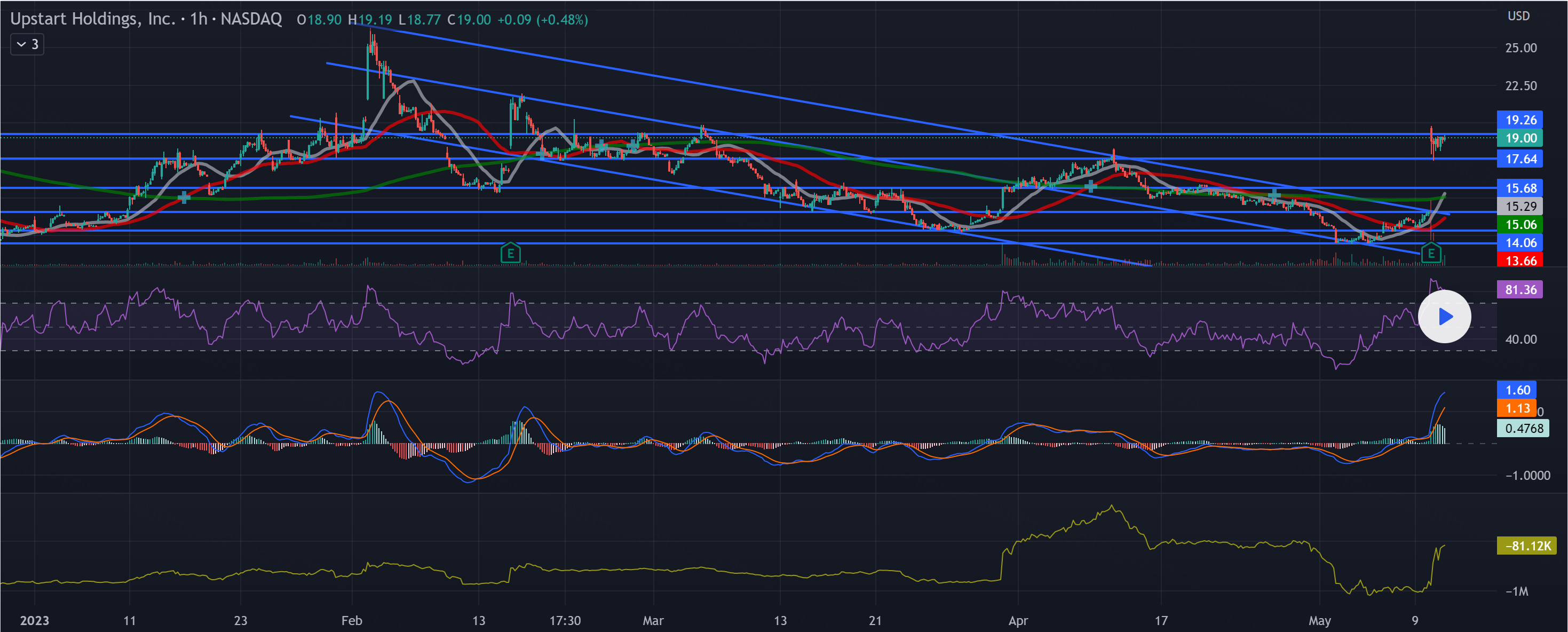 Fundamentally, UPST’s most recent catalyst was its Q1 earnings. UPST doesn’t have any upcoming catalyst, however, the Cross River Bank consent order might affect UPST in the future if Cross River Bank goes under. Additionally, The Feds possibly no longer increasing interest rates while potentially cutting them in the future could bode well for the company in the future.