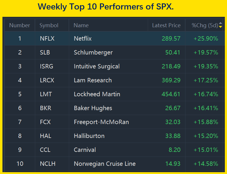 Top 10 lists: $NFLX(NFLX)$ ,$Schlumberger(SLB)$ ,$Intuitive Surgical(ISRG)$ ,$Lam Research(LRCX)$ ,$Lockheed Martin(LMT)$ ,$Baker Hughes(BKR)$ ,$Freeport-McMoRan(FCX)$ ,$Halliburton(HAL)$ ,$Carnival(CCL)$ ,$Norwegian Cruise Line(NCLH)$